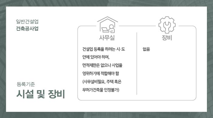 건축공사업 운영이 가능한 사무실의 준비가 필요합니다.
