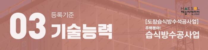 오늘은 도장습식방수석공사업의 주력분야 습식방수공사업 면허 등록기준에 대해서 안내드리도록 하겠습니다.