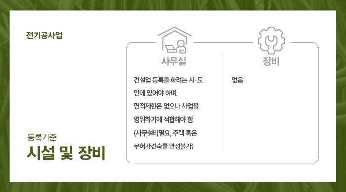 전기공사면허 영위를 할 수 있는 적절한 장소의 준비가 필요합니다.