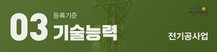 전기공사면허 기술능력 기준으로는 3인 이상의 기술자를 보유해야 합니다.