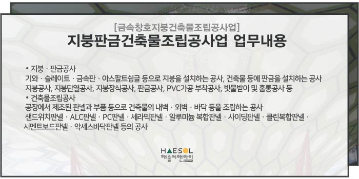 오늘은 지붕판금건축물조립공사업 등록기준에 대하여 살펴보는 시간을 가져보겠습니다.