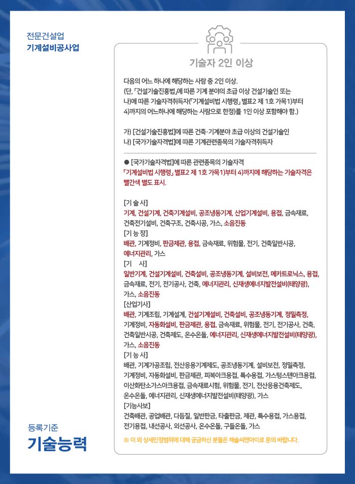 자격요건을 충족하는 기술인력 2인 이상이 필요합니다.