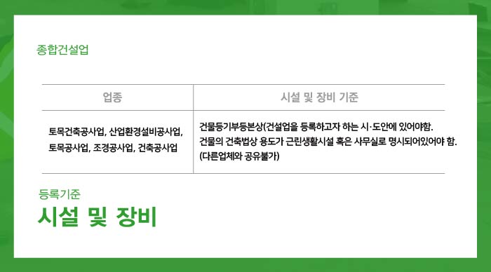 영위하고자 하는 사업자의 업무영역에 맞추어 종합건설면허 등록을 준비하시기 바랍니다.