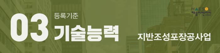 지반조성포장공사업은 토공사업, 포장공사업, 보링그라우팅공사업 이 3개의 업종이 통합된 대업종 명칭으로, 해당 업종 중 사업에 필요로하는 업종을 선택하여 등록할 수 있도록 주력분야라는 명칭을 써서 면허 신청을 하도록 되어있습니다.