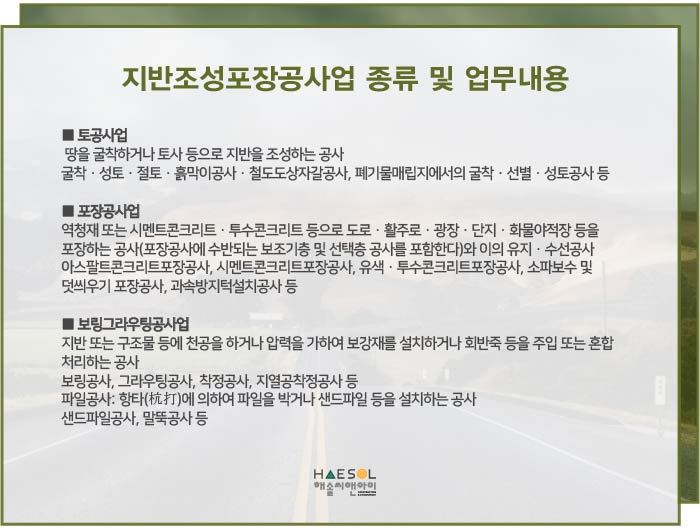 오늘은 지반조성포장공사업 면허 취득을 준비하시는 분들께 도움이 될 만한 내용을 가져와 보았습니다.