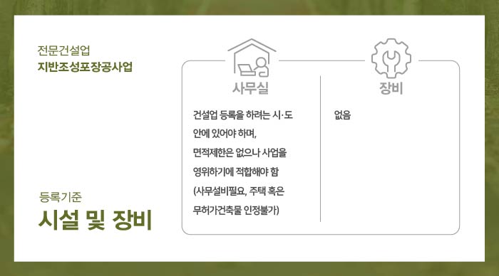 면허 취득을 위해서는 자본금, 공제조합출자, 기술능력, 시설 및 장비의 등록기준을 모두 충족한 후