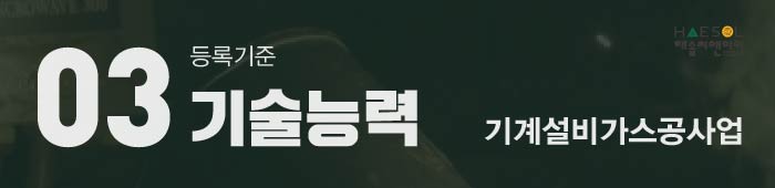 기술능력 등록기준은 사업 영위 시 필요로 하는 전문 기술인력 보유 능력을 보는 것으로, 기계설비가스공사업의 경우 규정된 자격을 갖춘 2인 이상의 기술자를 보유하셔야 합니다.