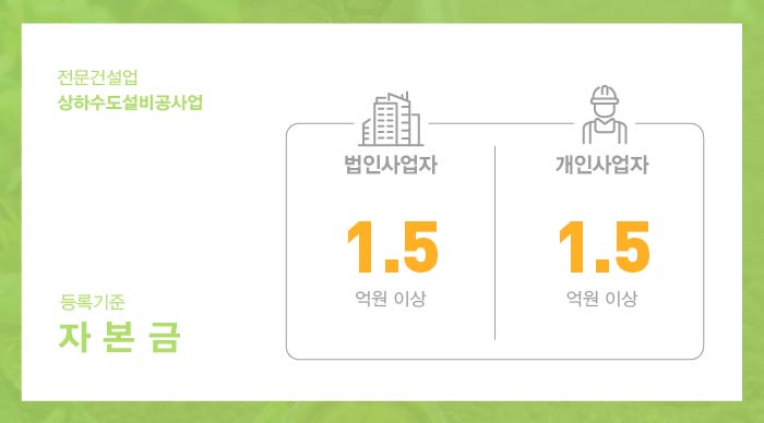 그리고 법인사업자는 법인등기부등본상 납입자본금 또한 등록기준 이상을 충족해야 하며, 사업목적란에 상하수도설비공사업에 관한 목적이 기재되어 있어야 합니다.