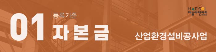 자본금은 법인사업자나 개인사업자 모두 준비해야 하는 기준 금액은 같으나, 법인사업자는 법인등기부등본상 납입자본금 또한 등록기준 이상을 충족해야 하며, 사업목적란에 산업환경설비공사업에 관한 목적 또한 기재가 되어야 합니다.