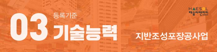지반조성포장공사업 면허 등록을 위해 준비해야 하는 2인 이상의 기술자는 반드시 건설기술진흥법에 따른 토목, 건축 분야 초급 이상의 건설기술자 또는 국가기술자격법에 따른 관련 종목의 기술자격취득자로서 구성이 되어야 합니다.