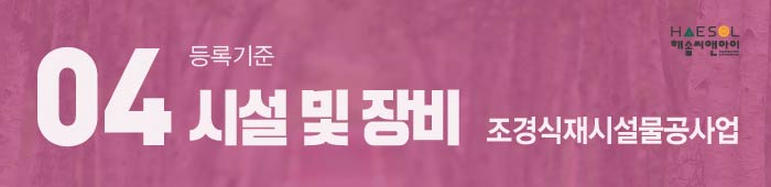 주력분야로는 조경식재공사업 또는 조경시설물설치공사업 중 한가지 혹은 두가지 업종 모두 선택하여 등록이 가능합니다.