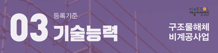 오늘은 구조물해체비계공사업 면허등록을 위해 준비해야 하는 등록기준에 대해 살펴보도록 하겠습니다.