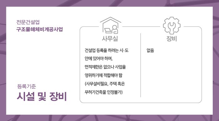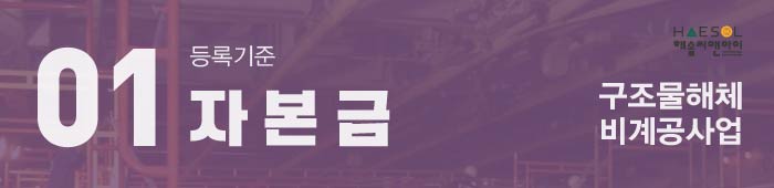그럼 지금부터 구조물해체비계공사업 면허 등록을 위해 준비해야 하는 사항들에 대해 안내드리도록 하겠습니다.