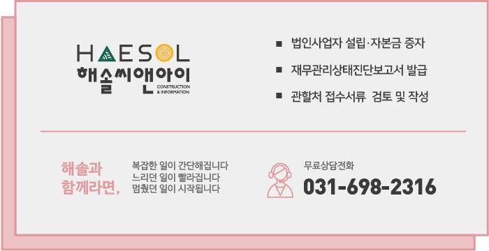 건설면허 취득의 핵심만 전달드리는 해솔씨앤아이입니다.