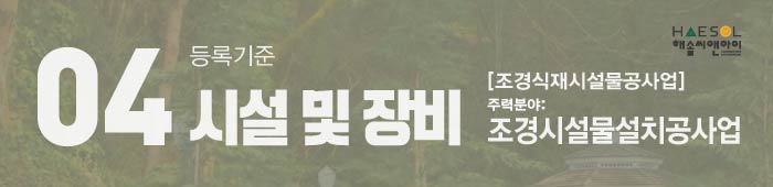 오늘은 이렇게 조경시설물설치공사업 면허등록기준에 대해 살펴보는 시간을 가져보았습니다.