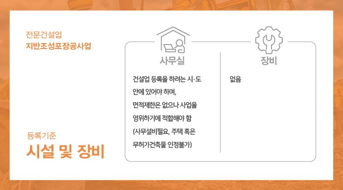 면허 등록을 위해서는 자본금, 공제조합출자, 기술능력, 시설 및 장비의 규정된 요건을 빠짐없이 충족해야하는데