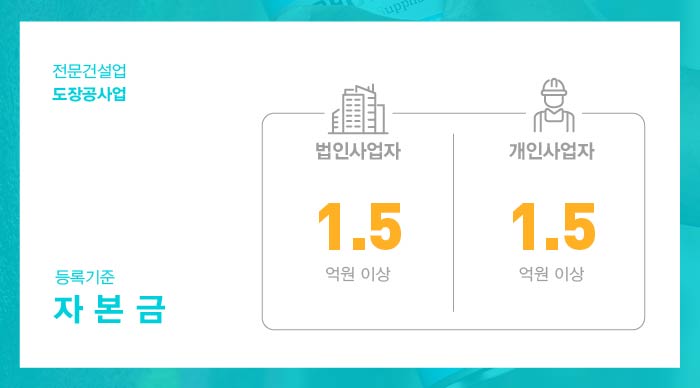 도장공사업 면허 취득을 위한 자본금 1억 5천만원 이상이 준비되어야 합니다.