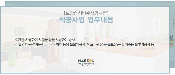 도장습식방수석공사업의 주력분야 석공사업 면허 등록에 대한 더 자세한 내용 안내가 필요하시다면, 건설면허 전문가 해솔씨앤아이로 문의주시기 바랍니다.