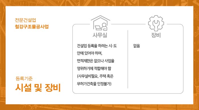 철강구조물공사업 운영이 가능한 사무실의 준비가 필요합니다.