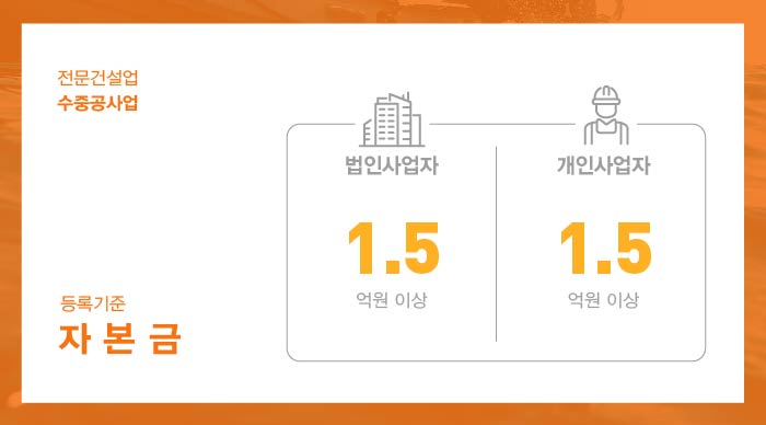 수중공사업 면허 등록을 위해서는 1억 5천만원 이상의 자본금을 보유해야 합니다.