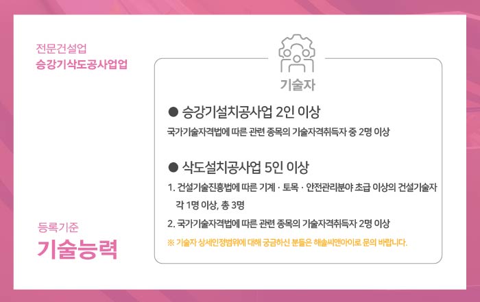 승강기삭도공사업 실무 운영 기술자가 필요합니다.