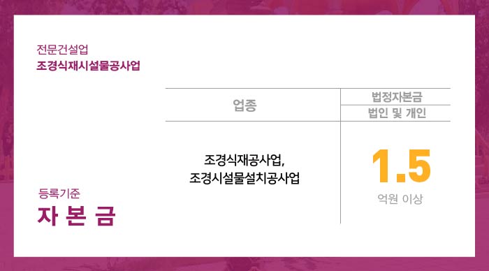 그럼 지금부터 조경식재시설물설치공사업 면허 등록을 위해 준비해야 하는 내용들을 안내드리겠습니다.