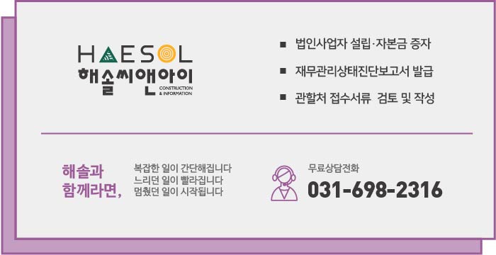 건설면허 취득의 핵심만 전달드리는 해솔씨앤아이입니다.