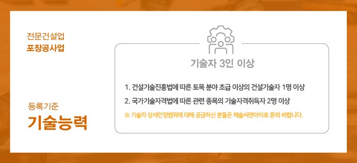 그럼 지금부터 포장공사업 면허 접수를 위해 준비해야 하는 등록기준에 대해 안내드리도록 하겠습니다.