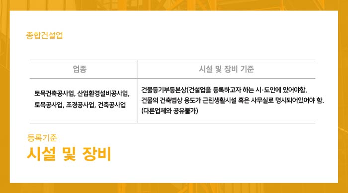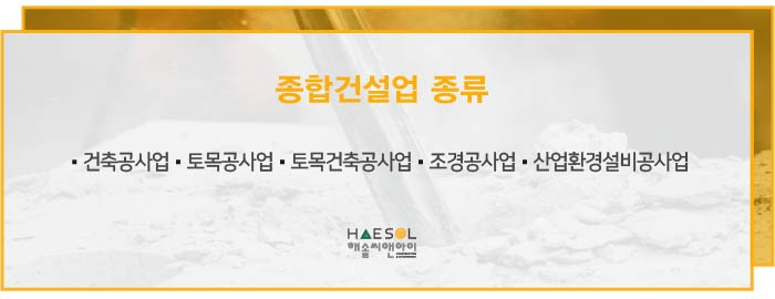 오늘은 종합건설업 면허 종류 및 등록기준에 대해서 설명드리겠습니다.