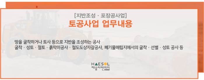 토공사업면허 등록에 대해 궁금한 점 있으시다면, 건설면허 전문가 해솔씨앤아이로 문의주세요!