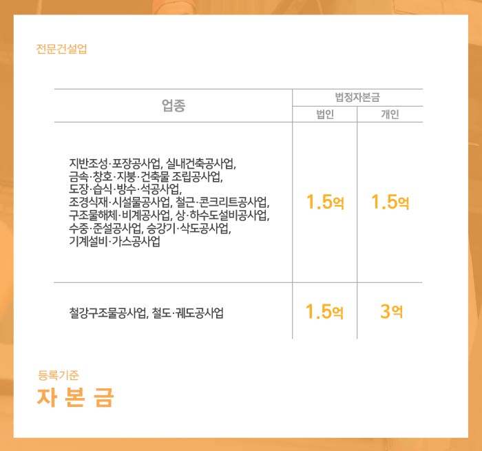 전문건설업면허 등록을 위해 법인 및 개인사업자 모두 자본금을 준비해야 합니다.