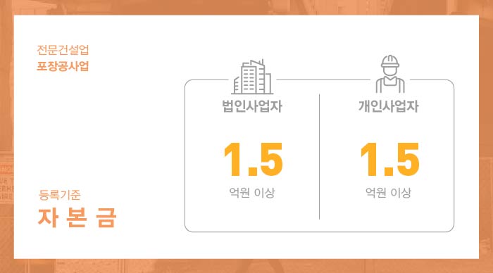 또한 법인사업자는 실질자본금으로써 1억 5천만원 준비 이외로 법인등기부등본상 자본금도 등록기준 이상 되도록 준비를 해주셔야 하며 사업목적란에 포장공사업에 대한 목적을 꼭 추가하여주셔야 합니다.