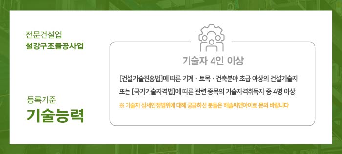 철강구조물공사업 실무 운영 기술자 4인 이상이 필요합니다.