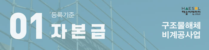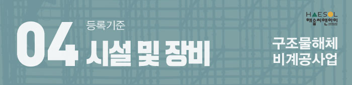 그럼 지금부터 비계구조물해체공사업 면허 등록기준에 대해 안내드리겠습니다.