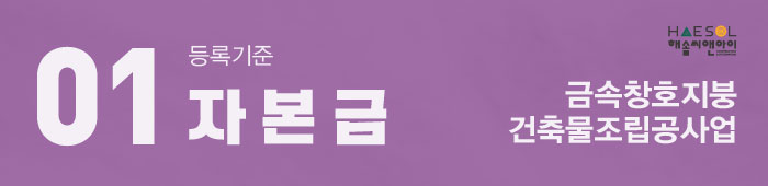 그럼 지금부터 금속창호지붕건축물조립공사업 면허 등록기준에 대해 안내드리겠습니다.