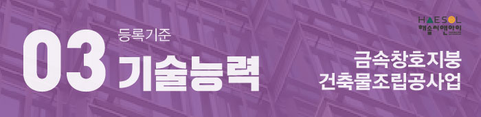 금속창호지붕건축물조립공사업 면허 등록에 대해 궁금한 점 있으시다면, 건설면허 전문가 해솔씨앤아이로 문의주세요!