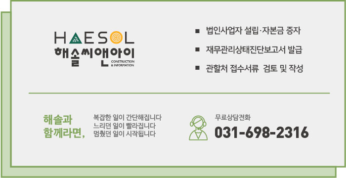 건설면허 취득의 핵심만 전달드리는 해솔씨앤아이입니다.