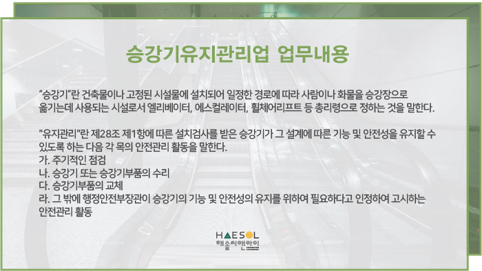 오늘은 승강기유지관리업 면허 준비 시 꼭 알아야하는 등록기준에 대한 내용을 준비했습니다.