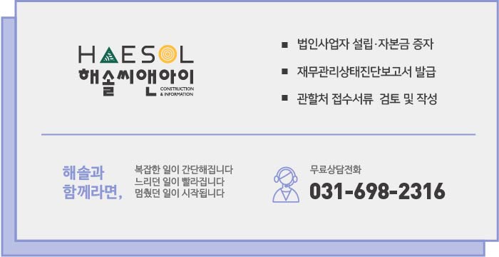 건설면허 취득의 핵심만 전달드리는 해솔씨앤아이입니다.