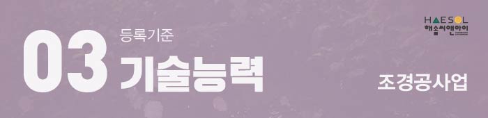 그럼 지금부터 조경공사업 면허 취득하기 위해 필요한 등록기준에 대해서 설명드리도록 하겠습니다.
