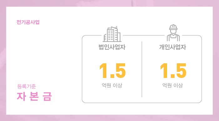 전기공사면허 등록을 위해서는 1억 5천만원 이상의 자본금을 준비해야 합니다.
