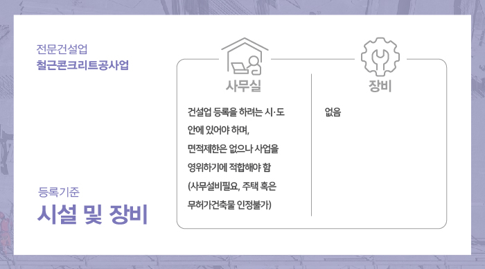 철근콘크리트공사업 면허 등록이 가능한 사무실의 준비가 필요합니다.
