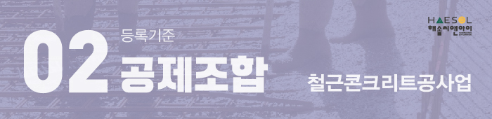 공제조합은 철근콘크리트공사업 운영 시 필요로 한 다양한 보증업무를 처리해주는 곳으로, 면허 취득을 위해 반드시 준비해야하는 등록기준 요건 중 하나입니다.
