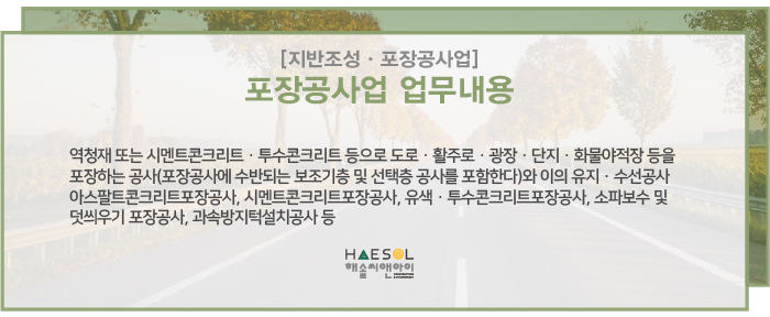 포장공사업 면허 등록과 관련하여 궁금하거나 도움이 필요하신 경우, 언제든 해솔씨앤아이로 문의주시기 바랍니다