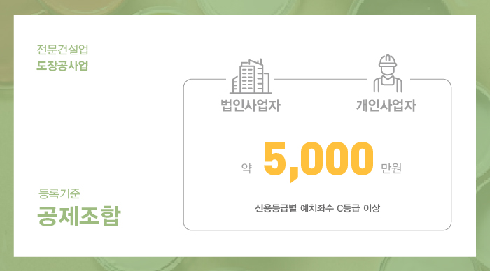 도장공사업 면허 등록을 하기 위한 공제조합 출자 예치 약 5천만원 진행이 이루어져야 합니다.