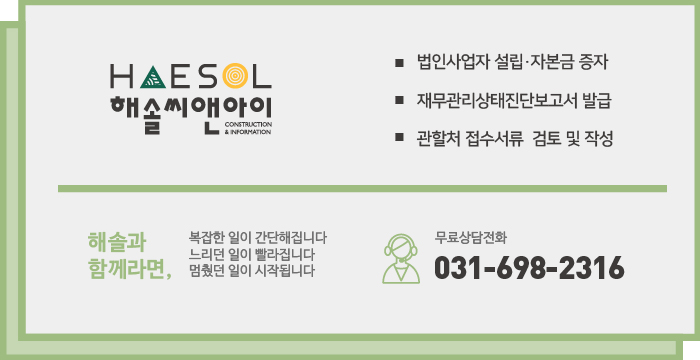 건설면허 취득의 핵심만 전달드리는 해솔씨앤아이입니다.