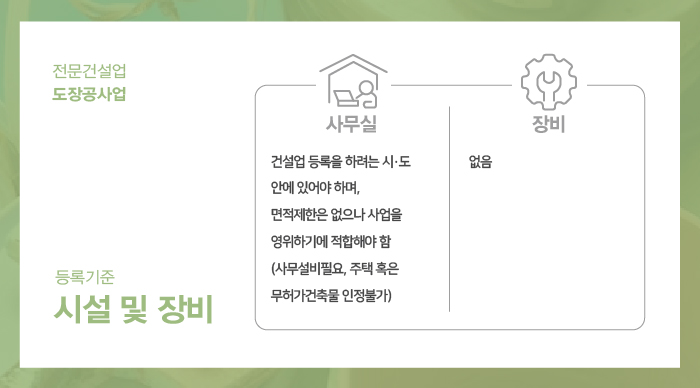 면허 등록을 위해서는 건설업 법령 상 규정된 요건을 모두 충족하셔야 합니다.