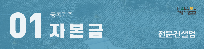 법인 및 개인사업자 모두 일정 자본금을 보유해야 전문건설업면허 등록이 가능하게 됩니다.