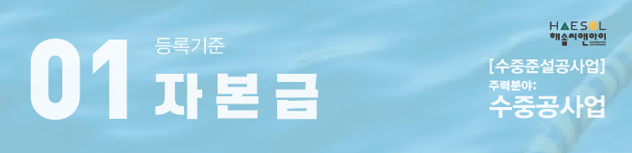 수중공사업 등록을 위한 자본금 1억 5천만원 이상 준비가 필요합니다.
