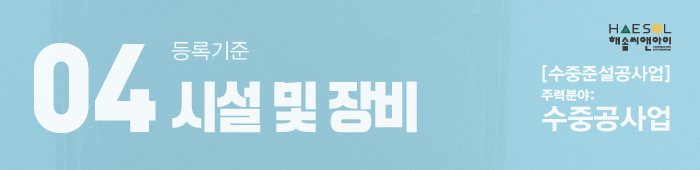 오늘은 수중공사업 등록기준을 체크한 후, 면허취득에 대한 준비사항에 대하여 알아보는 시간을 가져보도록 하겠습니다.